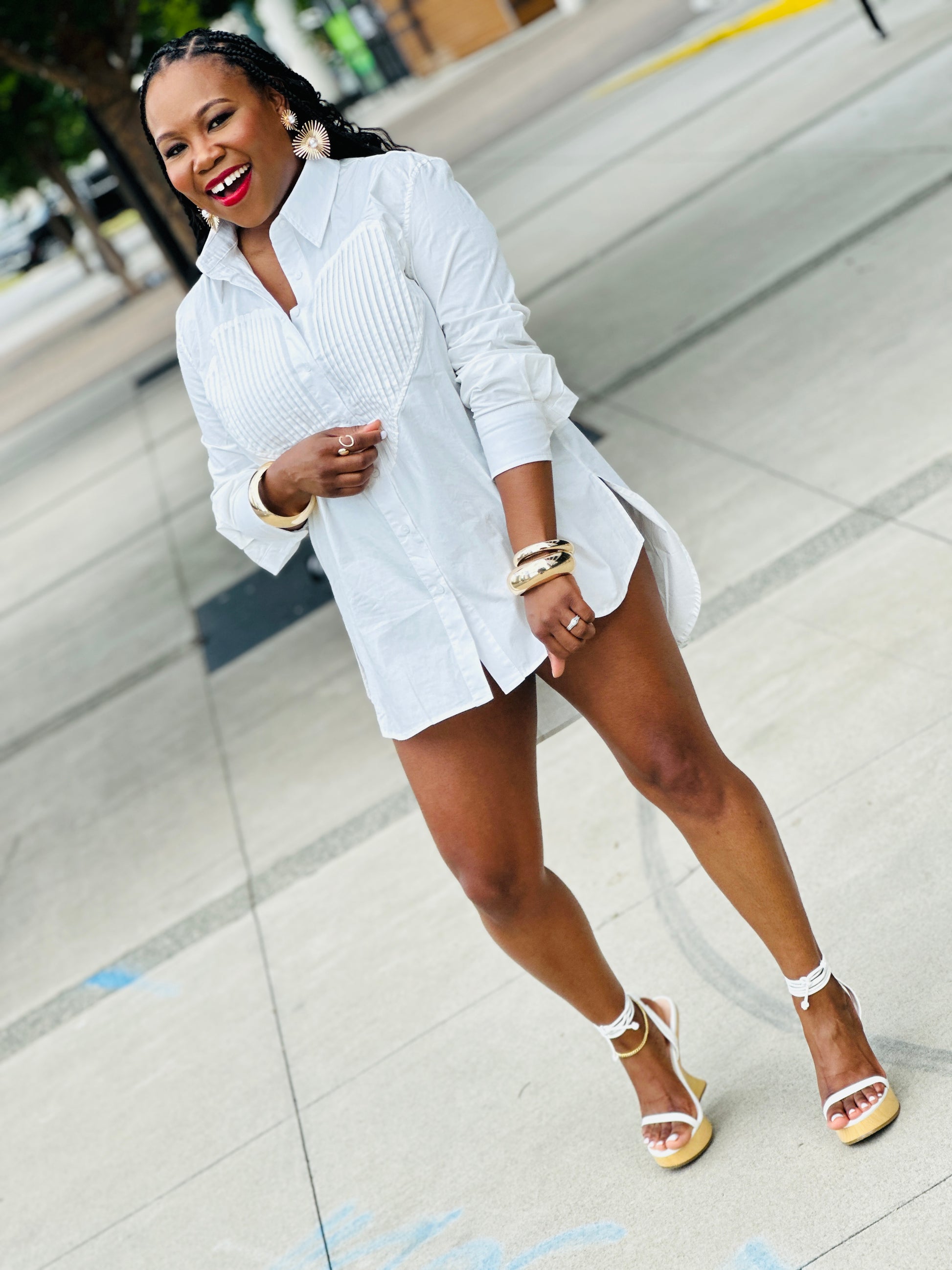 Get ready to fall in love with this Button Down Mini Shirt Dress! Featuring a white chest patch with a heart detail, it's perfect for year-round wear. With long sleeves and side slits, it can be worn as a shirt or dress. This versatile piece is sure to steal your heart!