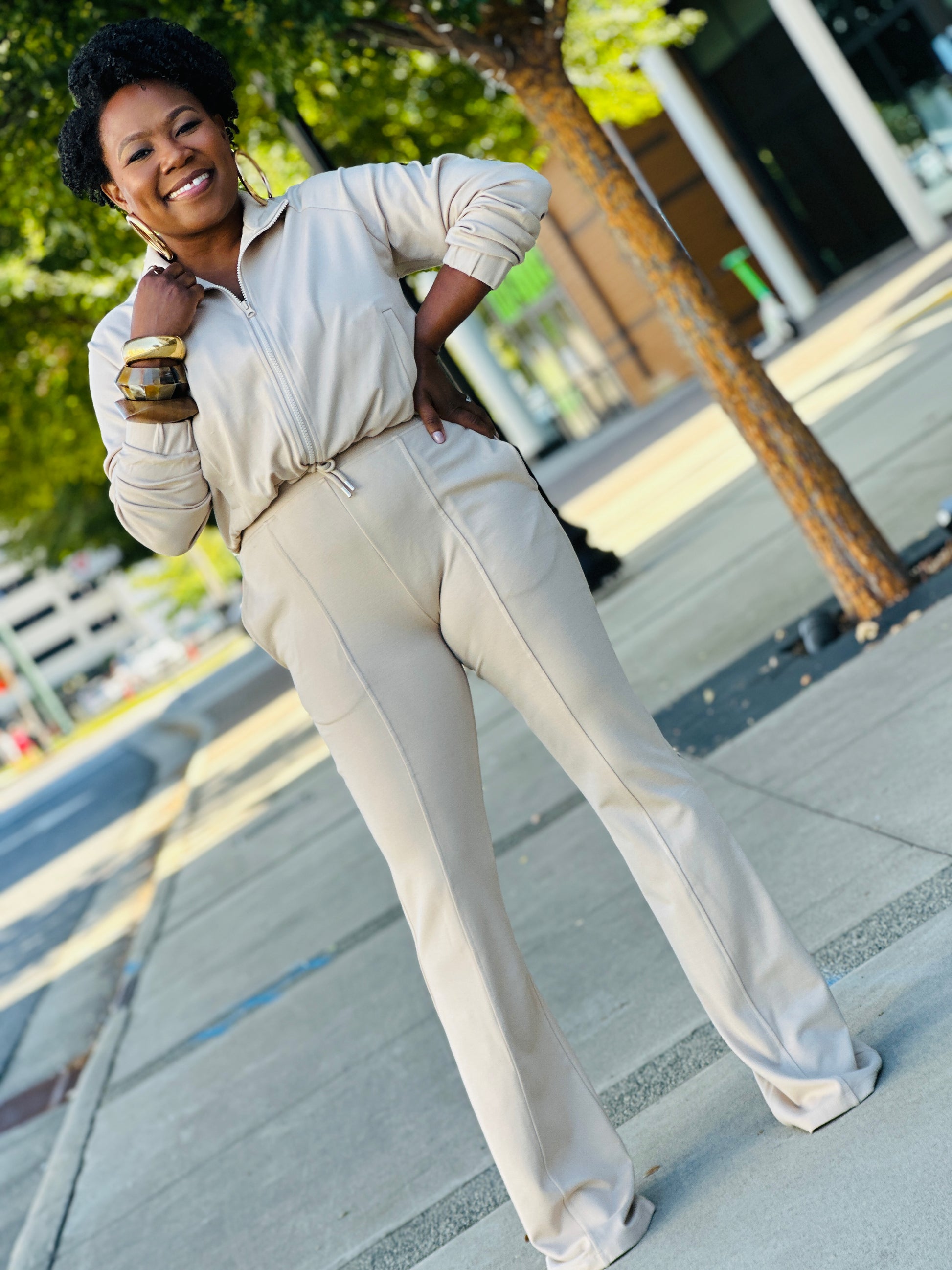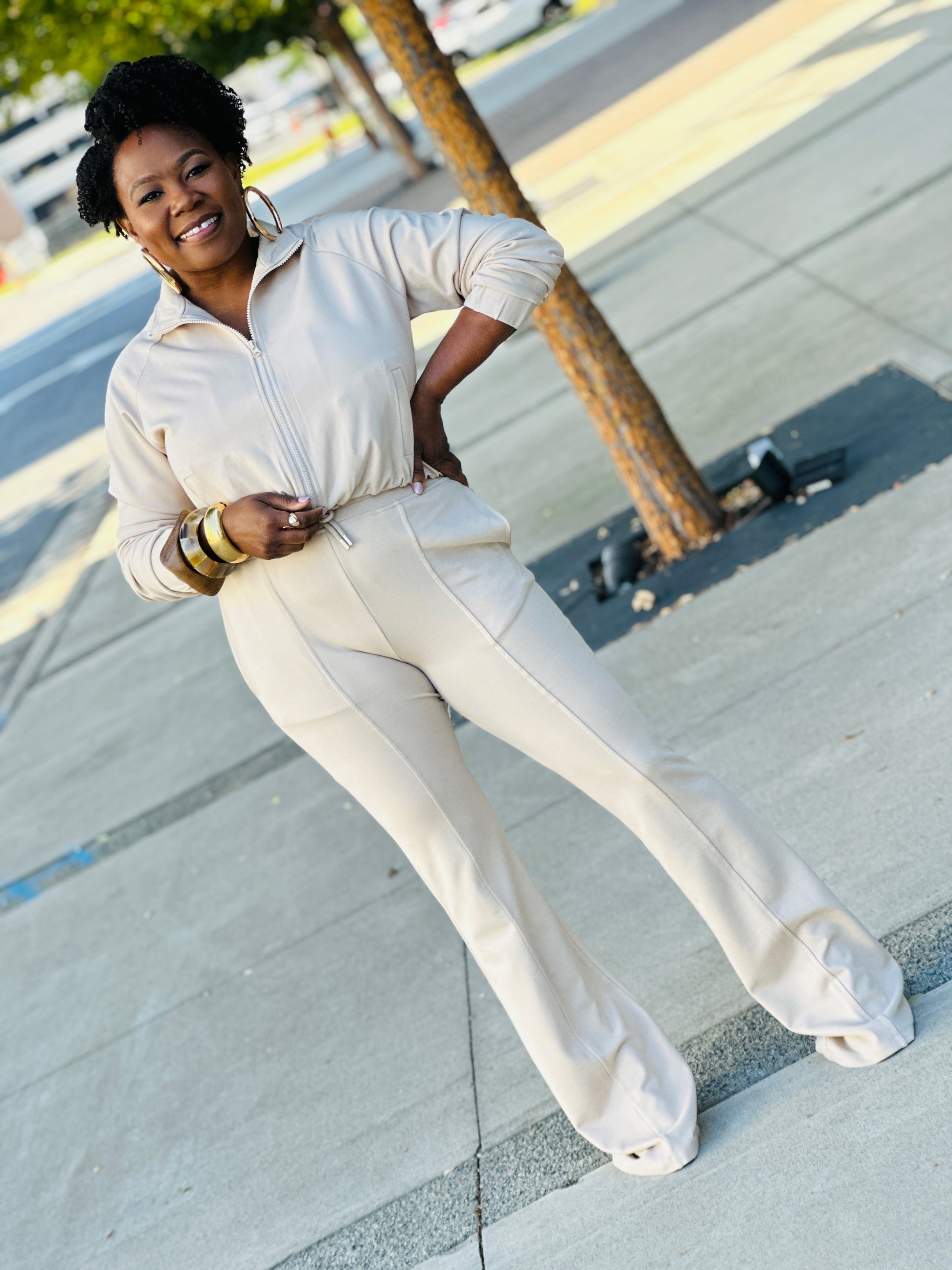 Get ready to zip up and go with our Cream Track Set! The adjustable jacket has a drawstring for a perfect fit, while the elastic waistband plus its drawstring on the pants ensures comfort all day long.