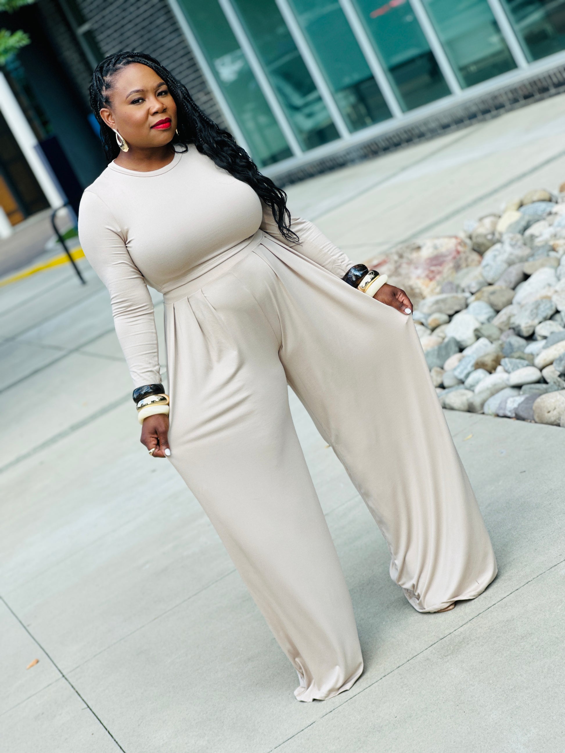 Go all in on comfort with our Pleated Pant Set! This long sleeve crop top and wide leg pants, made from extra stretchy fabric that moves with you. Perfect for lounging or running errands.