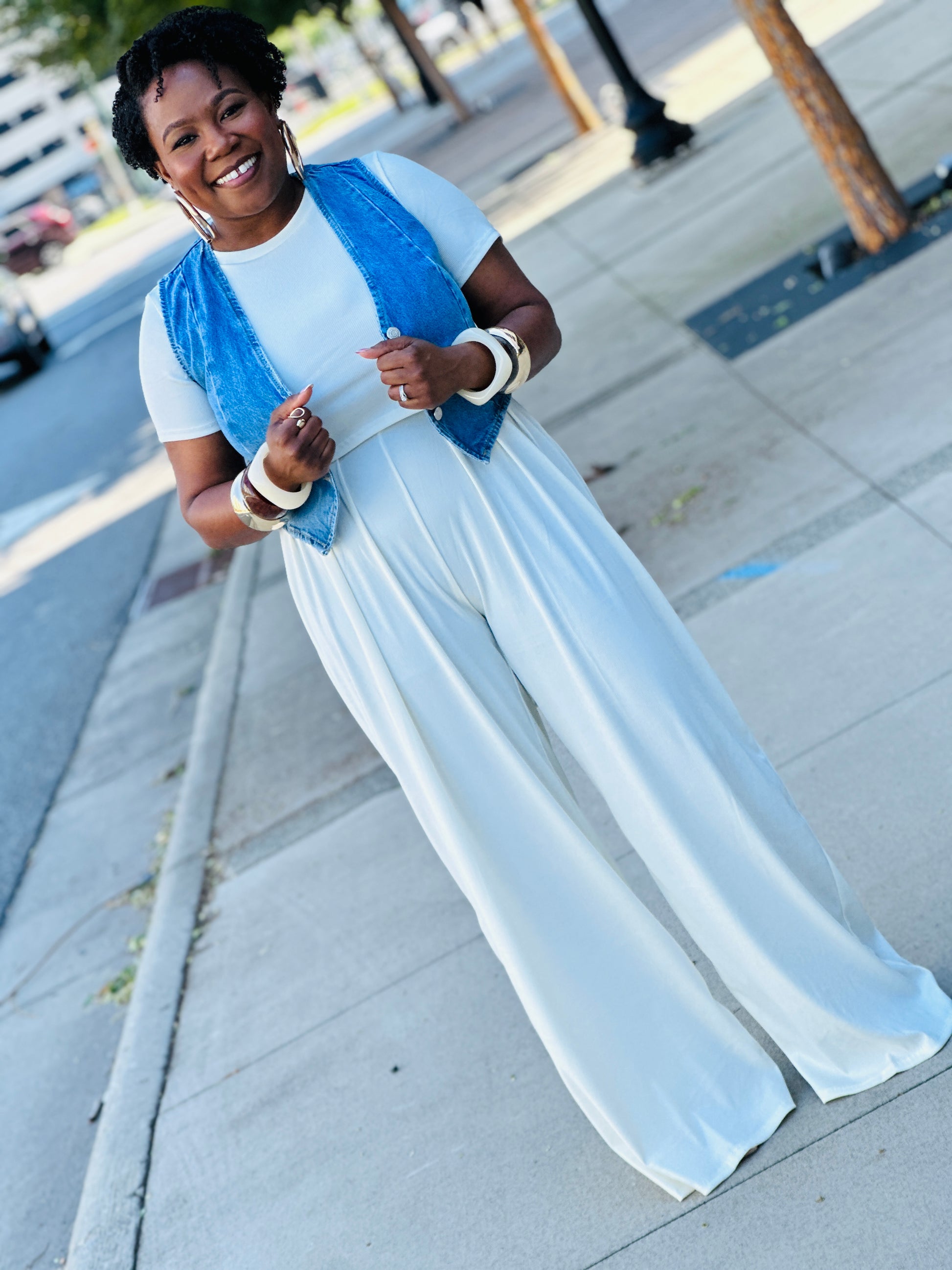 Get ready to turn heads in our Pleated Pant Set! With a crop top and wide leg pant, this set gives off major cool vibes. The thin pleated lines on the fabric add a unique touch. Perfect for any occasion, this set will have you looking and feeling fabulous.