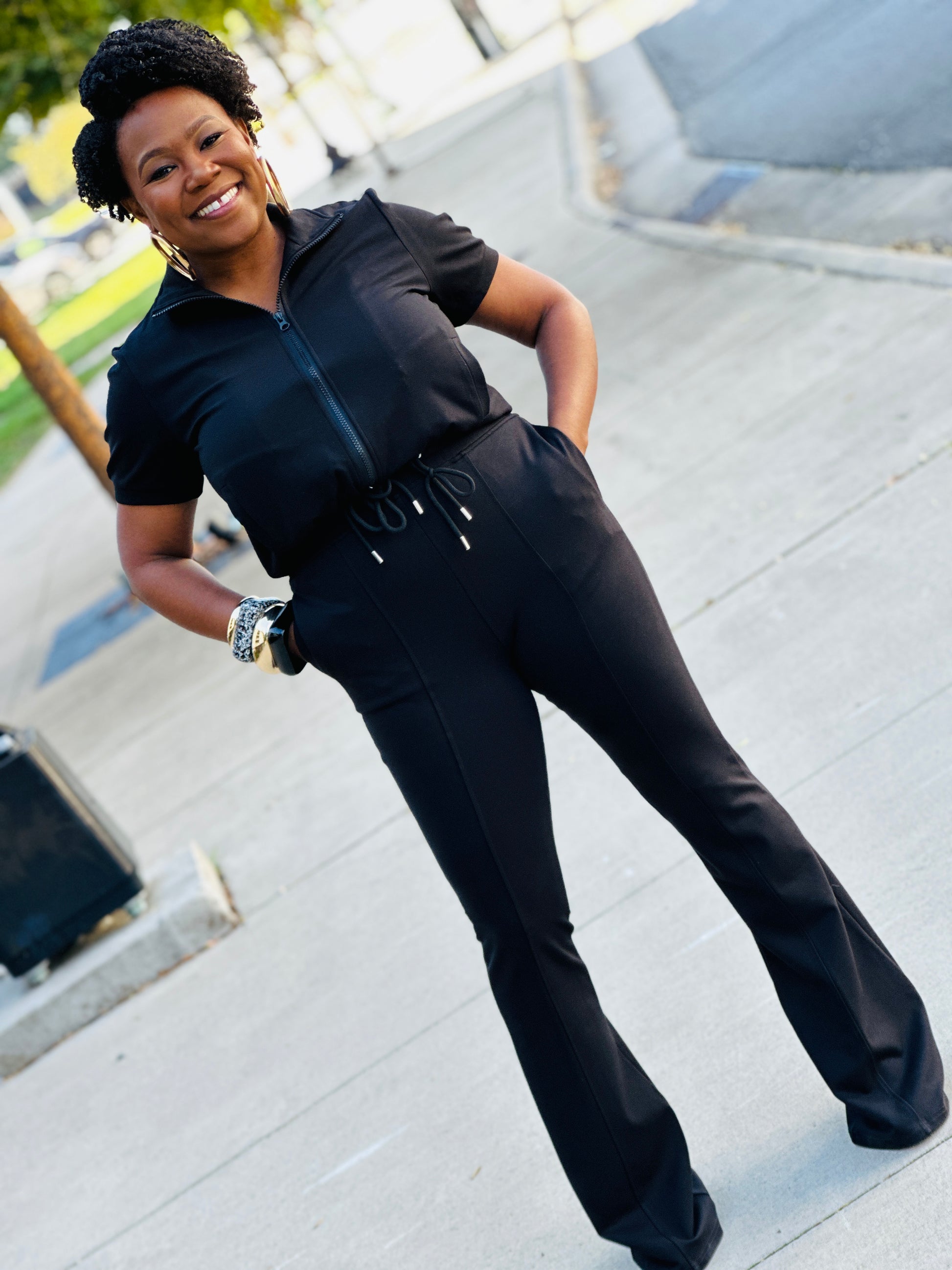Get ready to zip up and go with our Black Track Set! The adjustable jacket has a drawstring for a perfect fit, while the elastic waistband plus its drawstring on the pants ensures comfort all day long.
